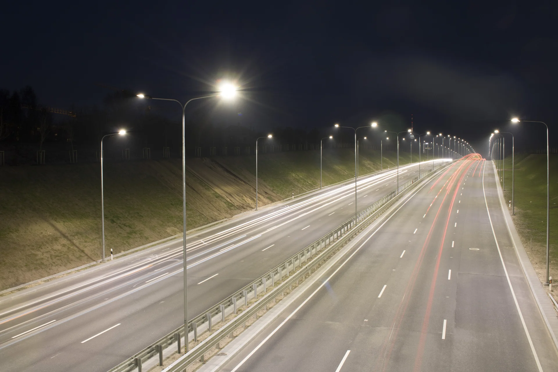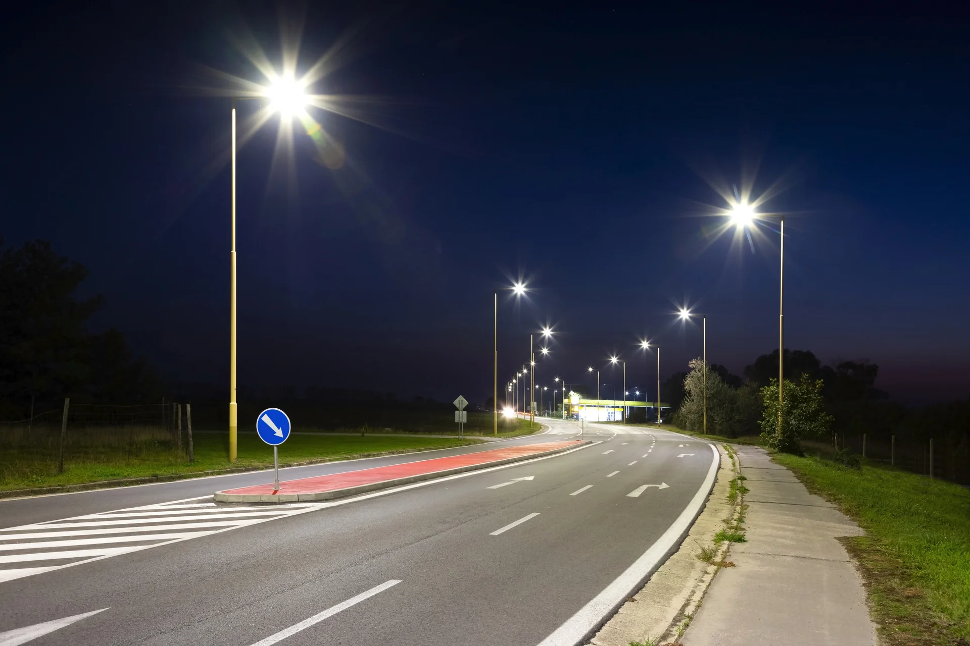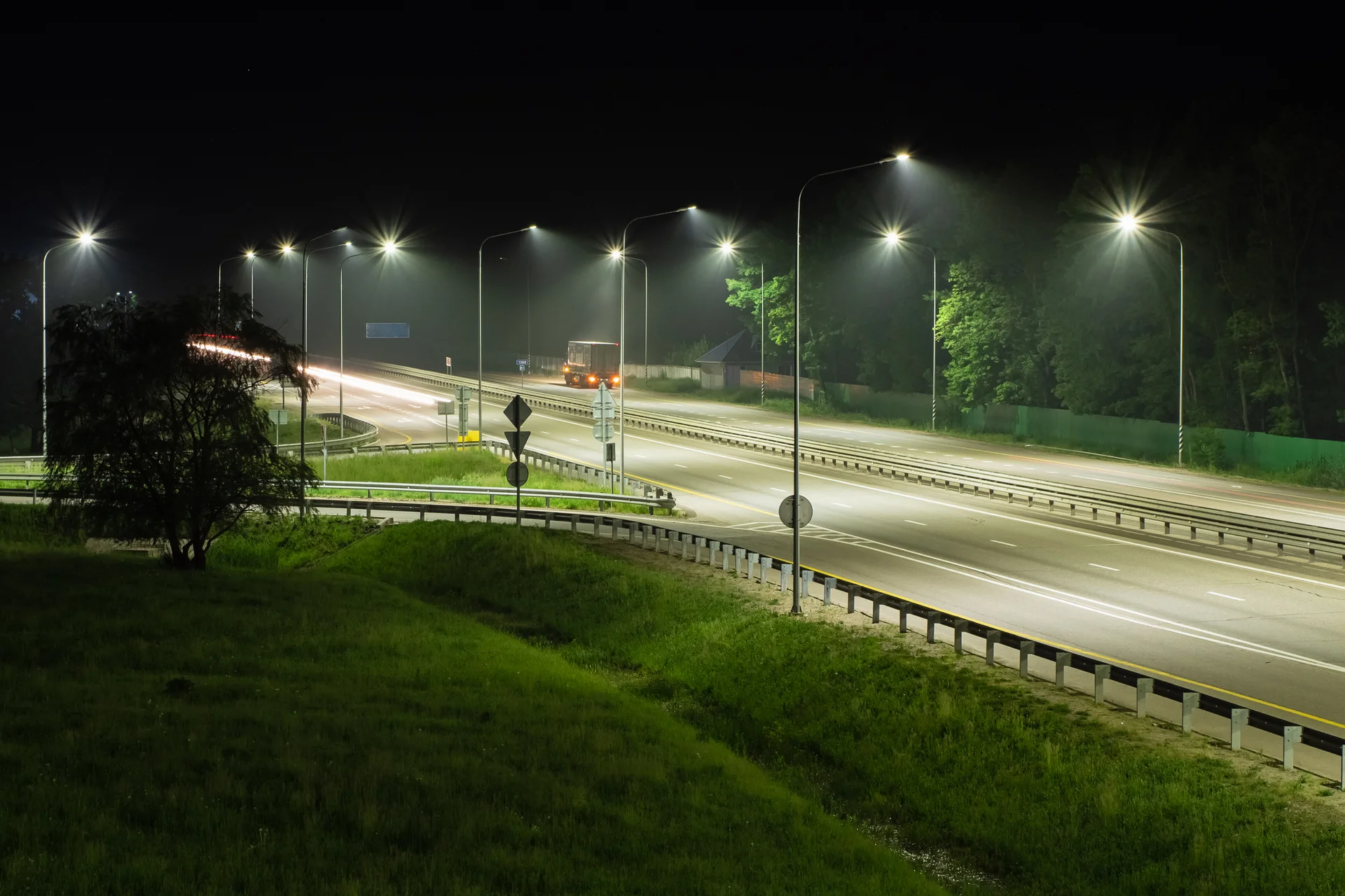 Road, park and industrial lighting. Complete electrical and energy works: modernisation, new installations, power section upgrades and smart control systems — DALI, LoRaWAN, NB-IoT.